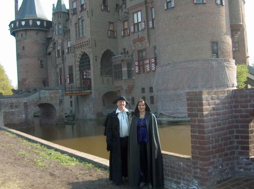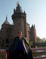 Sandra poseert voor het kasteel. |