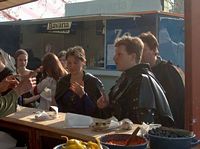 Bij een speciale kraam. |