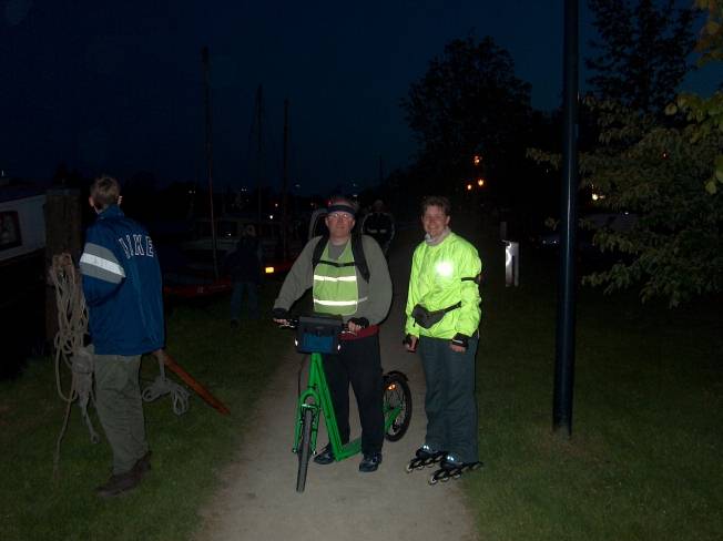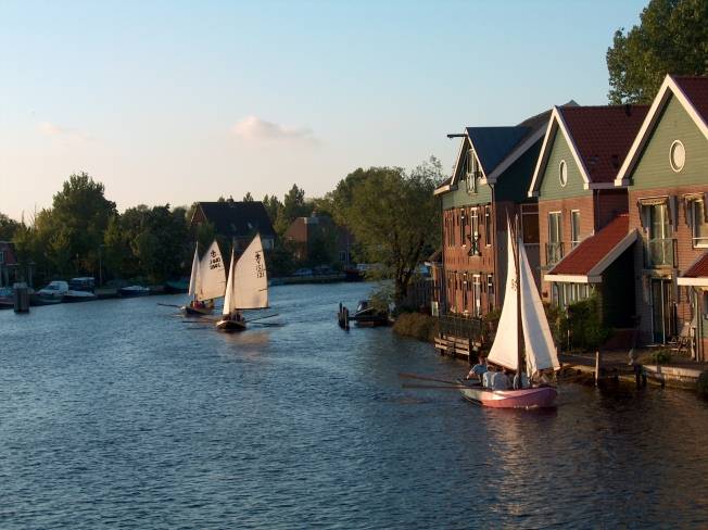 De teams varen Ouderkerk a/d Amstel binnen vlak voordat de zon achter de horizon zal verdwijnen. Een prachtig gezicht. Op dit moment liggen deze teams 4e, 5e en 6e in de race. |