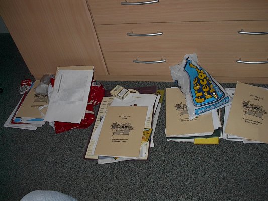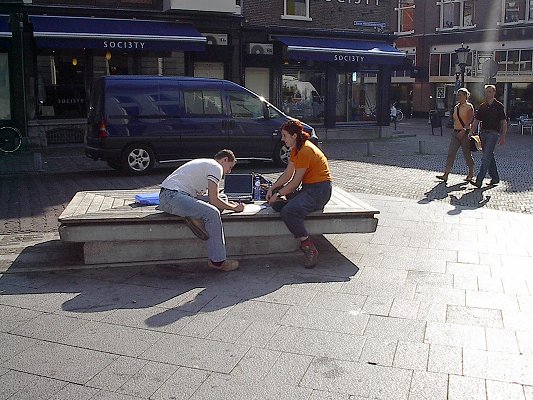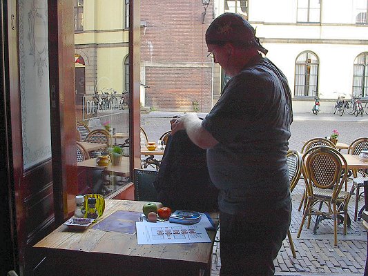 opdrachten op in het café.