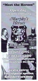 Murphy's Heroes is een spellenvereniging in Delft. Door ruimtegebrek kan hun jaarlijkse grote show "Murphy Mania" niet doorgaan. Ter vervanging is er dit jaar een open dag met miniatuurspellen, bordspellen, verzamelkaartspellen, rollenspellen, schilderworkshop en een prijsvraag. Op deze open dag kun je aanschuiven en meespelen bij alle speltafels, ook zonder spelervaring. De locatie is zalencentrum Delftstede, Phoenixstraat 66 te Delft. De open dag wordt gehouden op 11 juni 2005 van 10.00u tot 17.00u.