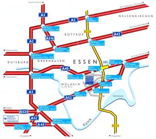 Met de auto is de Messe in Essen vanuit Nederland goed bereikbaar, mits je de juiste afslag naar Essen volgt. Er zijn 2 mogelijkheden: via de A40 of via de A52. De eerste is korter, maar dan moet je door de stad heen. De tweede is iets langer, maar dan ligt de beurs direct aan de snelweg. Volg daartoe de onderstaande beschrijvingen.