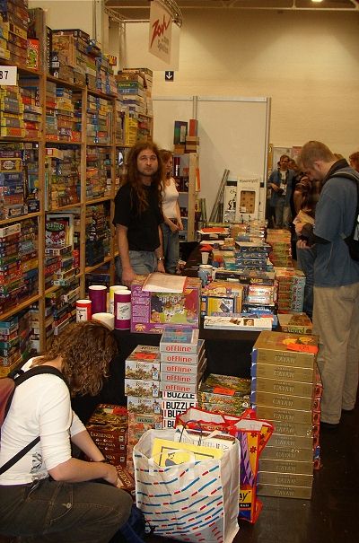 De deuren gingen open en zoals iemand ons zei, bij de voorgaande dagen betekende dit het einde der beschaving van de anders zo rustige bordspelspelers. Wij lieten ons maar een beetje meeglijden in de stroom en stonden eigenlijk meteen voor de stand van Kosmos om de uitbreidingen op te halen voor Kolonisten. Dat was de eerste streep die gezet kon worden op de lange lijst van "Things to do Today."
