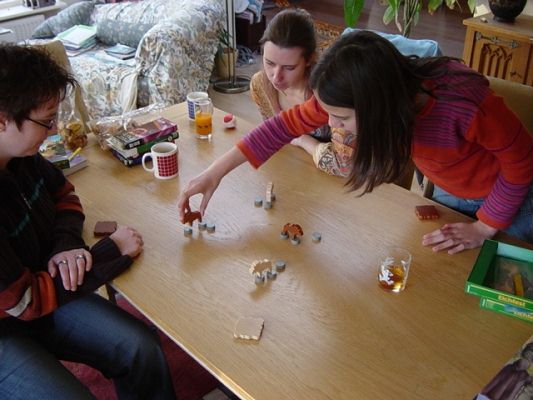 Nu ben ik waarschijnlijk een wat stroevere ondergrond gewend (ja ja, allemaal excuses) dus de stenen vlogen in mijn geval over de tafel. Dit leidde herhaaldelijk tot het omver kegelen van mijn eigen eland. Het arme beest is uiteindelijk met een gebroken neus en bloedlip als laatste aan de overzijde gekomen.