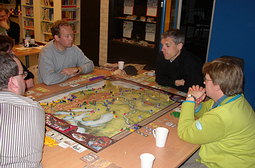 Railroad Tycoon, imposant bord en volgens de berichten een geweldig spel. Duurde alleen net zo lang als al onze 3 gespeelde spellen bij elkaar.
