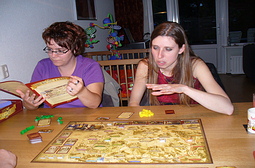 5-6-2006 Thurn und Taxis, Ingvild legt uit en Esther leest nog wat regeltjes door.