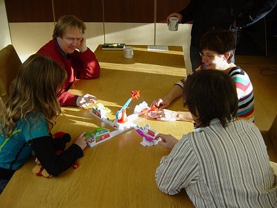 Vandaag begroeten wij wederom Jan Karel in ons gezelschap. Dat betekent dat we met zijn 8en zijn (mooi aantal). Omdat Esther en Ingvild er nog niet zijn wordt er gestart met het meest intelligentste spel dat ik ooit heb gespeeld: Stef Stuntpiloot. Het schijnt dat er van dit spel zelfs competitieavonden worden georganiseerd dus moest ik natuurlijk even zelf beleven hoe leuk dit wel niet is. Verder geen commentaar.