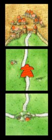 door het leggen van het nieuwe kaartje een weg, een stad of een klooster wordt