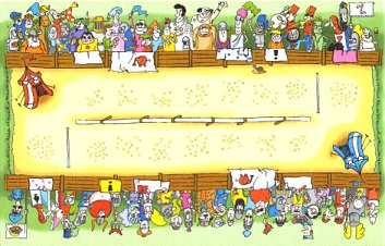 Toernooiveld, zodra je ridder bij een andere ridder op dezelfde tegel staat, daag je deze ridder uit voor een toernooi. Voorwaarde is wel dat je een goudstuk hebt om in te zetten. De uitgedaagde ridder hoeft geen goudstuk te bezitten maar kan wel de goudstuk winnen die is ingezet door de uitdager. Als een van deze ridders de kroon in bezit heeft wordt deze ingezet in het toernooi. Dit is dus de manier om de kroon af te nemen en zelf naar het paleis te brengen.