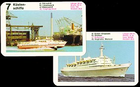 Introductie: Het laatste transportonderdeel van mijn verzameling: de vaartuigen. Net als de voorgaande delen, zijn ook deze kwartetten zeer geschikt om het troefspel mee te spelen (zie deel 9). In de kwartetten zie je òf grote passagiersschepen, òf snelheidsmonsters òf zeilschepen. In mijn verzameling helaas geen kwartetten over transportschepen, tankers en slagschepen, maar die zullen zeker ook bestaan.