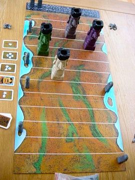 Introductie: Een zeer origineel thema, racen met standbeelden op paaseiland. De ware betekenis van deze beelden is tot op heden niet zeker en zo laat ook de ontwerper ons in het ongewisse maar schetst een mogelijk scenario waarin honderden mensen op het eiland een onderlinge wedstrijd aangingen waarbij deze beelden een zekere rol speelden. Ziezo, de link naar het spel is gelegd.