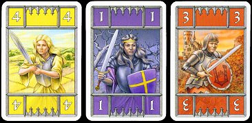 De ridderkaarten worden naar symbool gesorteerd. Elke speler ontvangt één van de