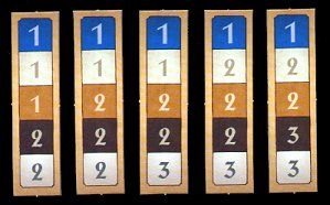 de startspeler krijgt de gouverneurkaart. De handelshuiskaartjes worden ook