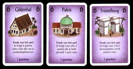 Zoals bekend uit het Puerto Rico bordspel zijn er ook gebouwen die een wisselend aantal punten opleveren.