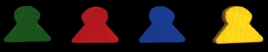 Elke speler krijgt 2 pionnen van dezelfde kleur. Eén is bestemd voor het