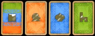 (blauwe kaarten), edelen (oranje kaarten) en ruilkaarten (gekleurde kaarten).