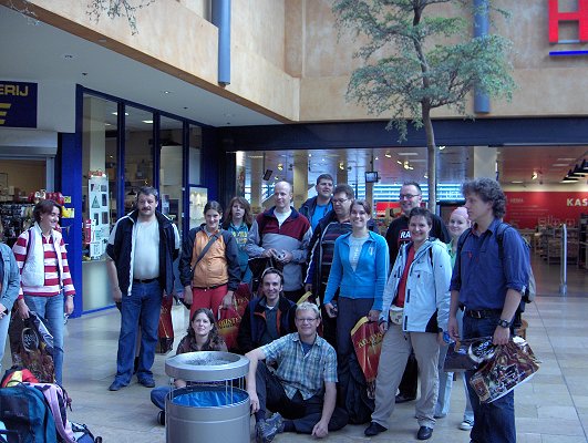 Een groepsfoto, vlak voor de start. De tasjes van 999Games vallen goed op.