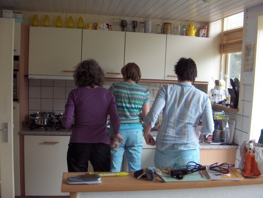 De dames van de catering: Sonja, Corrie, Esther. Soep, stokbrood, broodjes worst, salades...
