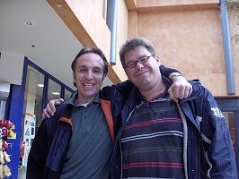 Vandaag: beginnen bij een zwijntje - zeer toepasselijk als je bedenkt wie de Uitdagers van vandaag zijn!!! Maar goed, als Uitgedaagden waren we aardig voorbereid. Eten en drinken mee, fietsje mee en alles in de auto. Om exact half 10 een groepsfoto en een tasje, het kan niet op. Eerst het hele bandje beluisterd, onderwijl nog even naar de speelgoedwinkels, het eerste zweet stroomt al aardig... Onderweg langs allerlei tramhaltes worden we nog veel natter: HET PLENST ALSOF WE IN HET REGENWOUD ZITTEN!!! De verzamelopdrachten vind ik (Sacha) deze keer niet zo leuk: er zijn namelijk alleen nog maar dingen te verzamelen waar niet aan te komen is: collecte-envelopjes, voetbalplaatjes, bekeuringen van vandaag en ga zo maar door. Gelukkig zijn er ook nog wel wat dingen op internet te vinden, de bibliotheek van Amstelveen is trouwens ook uitstekend geschikt als lunchgelegenheid en drooghok... De tijd begint al aardig te dringen en dat gaat op de zenuwen werken: als zo de winkels dichtgaan, kunnen we in een keer een stuk minder. Maar goed, we gaan stug door. Sandra is onderweg voor dingen als rozen en nagellak en ik probeer intussen met Willem z'n creditcard gegevens bij het kadaster op te vragen (wat overigens niet wil lukken, omdat er waarschijnlijk een nieuwe bij de bank klaarligt en deze niet meer geldig is). Ik verwacht Sandra zo weer in de bieb en dan gaan we eens zien wat er nog te doen valt. Rest mij nog te zeggen: the quick brown fox jumps over the lazy dog. Op naar Parijs.