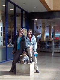 We moesten verzamelen bij het varkentje voor de HEMA. Deze landmark was al bij ons bekend, want vorige week waren we maar vast op onderzoek uitgeweest. Vast het winkelcentrum verkend, gekeken of er gratis internettoegang in de bibliotheek was (niet) en of er iemand in de omgeving zo dom was geweest om een onbeschermde draadloze internetverbinding te hebben (ja, dus). Om 8.30u zoon Quinten bij oma gebracht zodat deze de hele dag lekker kon spelen en geen weet had van de stress van zijn ouders. Toen met de auto naar Amstelveen, waar we onze auto gratis konden parkeren. Tja, zo'n verkenning wil dan nog wel eens helpen. Stipt om 9.30u kwamen we aan bij het varkentje waar de andere deelnemers al waren. De meesten hadden een walkman meegenomen, maar ook de ghettoblasters waren uit het vet gehaald. Tja, je moet toch wat als je een cassettebandje meekrijgt... Eerst maar het bandje gaan luisteren, maar om 9.45u vertrok de organisatie met de trein naar onbekende bestemming, alwaar we extra informatie zouden krijgen. Daarom opgesplitst, Jeroen bleef achter in Amstelveen voor de doe-opdrachten, Marion ging met de tram mee. Tijdens de tramrit bleken er nog veel meer opdrachten te zijn die alleen met de tram te maken waren, dus het hele traject tussen Amsterdam Zuid en het eindpunt in Amstelveen heb ik wel meegemaakt. Doordat ik druk bezig was het bandje af te luisteren heb ik nog wel eens een halte gemist en ook het overstappen van de ene op de andere tram had soepeler gekund. Jeroen was ondertussen druk bezig met het verzamelen van foto's, een elpee, een filmposter en luiers. Bij terugkomst zijn we samen de bibliotheek ingedoken om alle opzoekvragen te doen. Dat viel nog niet mee. Ik denk niet dat ik ooit nog het boek van Sos de demon zal vergeten.