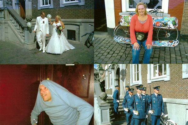 Onderwijl was het zo’n half 1 en moesten we aanstalten maken om naar de 1e bonuslocatie te gaan, de poolse tank. Het was ondertussen prachtig weer en helemaal geen straf om daar lekker te zitten in het zonnetje. Naast onze Uitdaging waren ook andere mensen bezig met een Uitdaging op de fiets, waarbij ze het aantal wielen moesten tellen van de tank. Spannend was het wel, om te zien of er teams aan zouden komen of niet. Danny en Edwin waren er als eerste en wisten ook te raden wat er in de schoenendoos zat, Wall-E. Dit leverde hen de volle bak aan punten op, 40 om precies te zijn. 25 voor het aankomen en 15 voor het raden. Verder kregen ze ook nog de envelop voor de beeldvragen op internet. Zo waren er 5 andere teams komen opdagen, dus waren we best tevreden. Jeroen kwam op de fiets voorbij en reed de verkeerde kant uit, waarna we hem zeker 10 minuten niet meer hebben gezien. Maar uiteindelijk kwam hij toch aangefietst en ook hij wist het goede antwoord te geven. Esther en Monique waren als laatste aangekomen en hadden een waterballon die nogal lekte, maar dat was voor de opdracht niet erg. We gingen weer verder op pad want we hadden het nog erg druk . We moesten boodschappen gaan doen en gingen naar de Aldi om daar onze voorraad in te slaan, en voor de kleine dingen naar de Albert Heijn. De boodschappen maakte de auto afgeladen vol en zo gingen we naar de kermis in het Ginneken, de tweede bonuslocatie. Daar waren we ruim op tijd en gingen nog zelf even de braderie over, en we hadden een zak popcorn nodig. Deze was 304 gram, het gewicht wat geraden moest worden door de deelnemers. Na een gezellig tochtje over de braderie, ging ik midden op de kermis tegenover het spookhuis staan. Een grote ruimte, in het zicht, weinig mensen op die plek, en vooral niet teveel herrie. De kaartjesophaler van het spookhuis vond het maar vreemd en hield ons goed in het oog. Het moet ook een raar gezicht zijn om iemand te zien die een clipboard vast heeft op de kermis ;-) Mensen liepen met een grote boog om ons heen omdat ze misschien anders een enquete verwacht hadden. Dat kwam voor ons wel goed uit. Jeroen van Amanda was als eerste aanwezig en kon ook de ballon laten zien. Het gewicht van de zak popcorn was wat lastiger, maar desalniettemin haalden ze daar toch 12 punten mee ! Zo waren er uiteindelijk 9 mensen naar de kermis gekomen en ook daar waren we tevreden mee. Maar we hadden wel een probleem. De mensen die niet langs kwamen, wisten niet waar de eindlocatie zou zijn en hoe gingen wij die hen nu verstrekken ? Dit was namelijk een rebus die opgelost moest worden en dat kun je niet via sms doen. We besloten om die deelnemers een SMS te sturen dat ze tussen 17.45 en 18:00 uur op het station zouden moeten zijn, en ze daar ook echt naartoe moesten komen. Uiteindelijk had elk team dat gedaan en kon iedereen weten waar de eindlocatie zou zijn.
