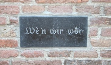 Op sommige gebouwen kom je de raarste teksten tegen. Wat staat er op de volgende gevelsteen? (maar dan in het Nederlands, natuurlijk)