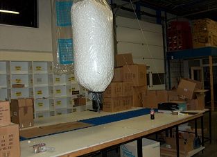 de inpakbalie en een deel van het magazijn