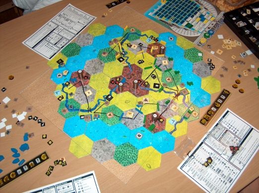 Na de barbecue wilde Willem graag nog Roads & Boats doen. Hij had het spel meegenomen op verzoek van Henk-Jan, maar die moest vroeg naar huis. Na enig overleg wilden uiteindelijk Ronald I en Seb wel meedoen. Er werd gekozen voor het Triangle scenario. Iedereen maakte in het begin kleine foutjes. Maar toen begon Ronald I uit te lopen. Toen hij al aan de productie van zijn eerste munt begon, bouwde Seb net zijn olieplatform. En toen Ronald I via een slinkse manoeuvre ineens twee vrijliggende goudklompjes bij Willem kon inpikken, sloeg de wanhoop bij Willem en Seb toe. Willem zag nog een kleine mogelijkheid om Ronald I te achterhalen, maar eigenlijk was het hopeloos. Beiden besloten de winst aan Ronald I te laten.