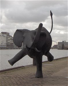 een vrolijke olifant voor de deur