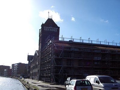 de voormalige koekfabriek nog in de steigers