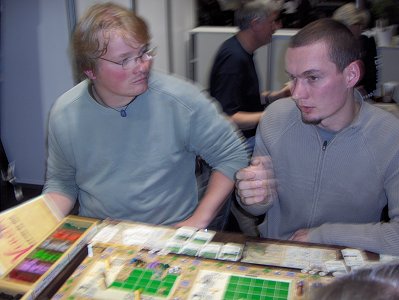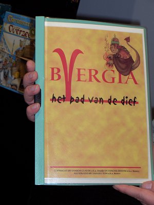 Claude en Dimitri uit België demonstreerden een prachtig zelfgemaakt spel: Byergia. De spelers beheren een kruidentuin van een stad en ontwikkelen daar kruiden om de ziektes die de steden teisteren te bestrijden. Ze waren op zoek naar een uitgever voor dit spel. De hoeveelheid regels en spelmateriaal kan echter een flinke drempel vormen. Ik wens ze veel succes!