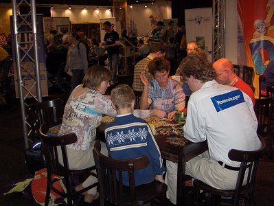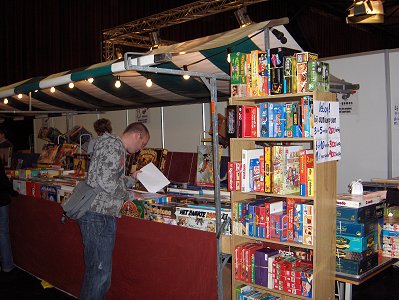Op zaterdag was er het Nederlands Kampioenschap Rubik's Kubus. Erik Akkersdijk is Nederlands Kampioen geworden met een gemiddelde van 14.15 seconden. Ron van Bruchem draaide in de finale nog een wereldrecord van 9.55 seconden. De finale gaat over 5 pogingen. De beste en de slechtste vallen af en de overige drie worden gemiddeld. Bij het geblinddoekt kubussen was Erik Akkersdijk ook de beste in een nieuw Nederlands record: 2:28.52 minuten. Bij de 4x4x4 kubus haalde Marc van Beest in de voorrondes een nieuw Nederlands record met 48.28 seconden. De finale wist hij te winnen in een gemiddelde van 1:00.92 minuten. De volledige uitslagen kun je vinden op de site van de World Cube Association. Tot slot was er nog een aparte hal voor de fantasy spellen, verzamelkaarten en roleplaying. Aangezien we om drie uur helaas alweer op de terugweg moesten, hadden we geen gelegenheid om overal lang bij stil te staan. Dat was wel jammer. De afgelopen jaren heb ik in drie dagen veel meer kunnen zien en spelen. De algemene indruk van het nieuwe spellenspektakel is positief. Er is voldoende ruimte om te groeien, een groot deel van de bezoekers heeft de nieuwe locatie weer kunnen vinden, er kan eenvoudig voor de deur worden geparkeerd, de toiletten waren dit keer gratis, er was voldoende catering en veel van de standhouders waren positief. Naar schatting zijn er een kleine 10.000 bezoekers geweest. Dat geeft hoop voor de komende jaren. Natuurlijk waren er ook wat minpuntjes. Er waren wat minder winkels dan in de andere jaren. De stripboekenbeurs was een leuk idee, maar lag er een beetje verlaten bij. De informatievoorziening van de organisatie vooraf liet nogal te wensen over. Geen idee of er een persconferentie is geweest; ik ben er in ieder geval niet voor uitgenodigd. Het lijkt wel of de organisatie de informatievoorziening door websites niet op waarde weet te schatten. Ze weten je echter wel te vinden als er hulp gewenst is voor bijvoorbeeld de televisie. We zullen zien hoe zich dat in de toekomst ontwikkelt. Hieronder nog enkele beelden met toelichting.