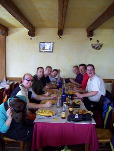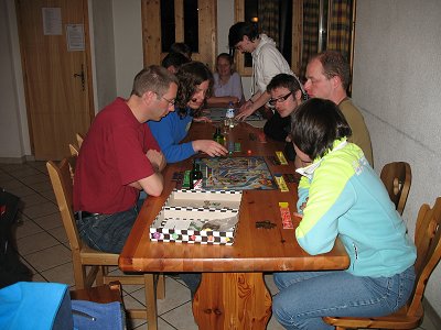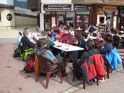 Veel files in het begin in Nederland, maar toch waren we 's morgens vroeg al op de plaats van bestemming. We konden echter pas in de middag in onze huisjes. Enkele fanatiekelingen gingen direct al skiën, de rest zocht een zonnig terrasje en haalde de spellen uit de koffers.