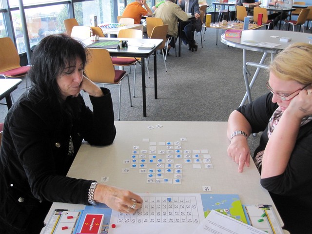 Een nieuwe twee-daagse spellenbeurs in Den Haag, dat was natuurlijk een bezoekje waard. Ondanks wegopbrekingen kon er eenvoudig gratis in de buurt worden geparkeerd. De beurs stond buiten niet echt aangekondigd. Pas toen je binnen kwam, wist je dat je goed zat. Met de lift naar de tweede verdieping, waar een grote kantine gevuld was en verder nog diverse "klas"lokalen. Diverse verenigingen en spellenuitgevers zorgden ervoor dat veel spellen konden worden uitgeprobeerd en uitgelegd. Ook waren er diverse punten waar spellen konden worden gekocht. Hieronder een foto-impressie.