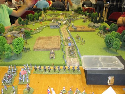[Edit: In reactie op bovenstaande, ontving ik een e-mail: Ik kan niet voor de Warhammeraars spreken maar je foto´s beelden mijn Amerikaanse Revolutie spel af dat wel degelijk bedoeld was –en gefunctioneerd heeft- als een participatiespel. We hebben heel wat publiek uitgenodigd om kennis te maken en een paar jongens van een jaar of 10 hebben het grootste deel van de tijd meegedaan. Eentje staat er zelfs op de foto. Ik heb ook heel wat uitleg verschaft aan voorbijgangers, maar toen jij je foto´s stond te maken was ik misschien net even aan de koffie...? ]