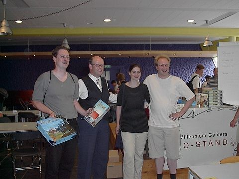 Bij de prijsuitreiking bleek, zoals verwacht, dat de punten niet toereikend waren voor kwalificatie voor het EK. Toch bleek het verschil met de nummer 3 niet geweldig groot. Over the Hill.com de winnaar van de afgelopen jaren moest genoegen nemen met een derde plaats. Het team kon door een ernstige ziekte van een van de spelers niet met de sterkste afvaardiging verschijnen. Spelmagazijn wenst de speler van harte beterschap. Verrassende winnaar was nieuwkomer Gamepack. Op de website Gamepack.nl kun je een verslag van hun belevingen lezen. Ook 999Games had een team afgevaardigd. Hun doelstelling was de teams van andere uitgevers voor te blijven. Dat is gelukt, want die waren er (helaas) niet. Rob was wederom de slechtste speler van het toernooi met vier vierde plaatsen. Hij had helaas dus niets geleerd van zijn prestatie tijdens het EK. Gelukkig kon hij lachen toen hij als prijs nog het spel Biggen kreeg. Hans van Halteren haalde de maximale score van vier eerste plaatsen. Sacha van Spelmagazijn.nl werd tweede in het individuele klassement. Een prachtige prestatie bij het debuut.