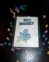 Geen gemakkelijke regels dus. Door de aap en de man met de gele hoed kwamen we al snel op het thema oerwoud, waarin stropers op jacht zijn naar dieren. De man met de gele hoed is dan één van de rangers. Doordat we al snel met een thema aan de slag gingen, sloegen we de basis over en werd er al snel over details gepraat. Met een aantal tegels van Attika werd een oerwoud gebouwd en in het midden van elke tegel werden torentjes gebouwd van Torres blokjes. Risk blokjes werden de dieren die in vier kleuren aanwezig waren. De terreinsoorten op de Attika tegels bepaalden waar de dieren zouden starten. De spelers waren dan stropers die in hun beurt vallen konden zetten, de dieren konden opjagen en eventueel neerschieten. Er moesten combinaties van dieren worden verzameld om veel punten te scoren. De rangers namen plaats in de toren en konden zo velden blokkeren. Telkens als een ranger verplaatst werd, verdween een deel van de toren, zodat er naarmate het spel vorderde meer ruimte op het bord zou ontstaan. De blauwe aap kon een stroper helpen bij het verzamelen gevangen/neergeschoten dieren. In eerste instantie moest elke speler altijd de zandloper gebruiken, maar daardoor was er te weinig tijd om na te denken over de tegenstanders, waardoor er minder interactie was. De zandloper kwam dus alleen tevoorschijn bij een bepaalde worp met de dobbelsteen. Het idee leek leuk in elkaar te zitten en dus begonnen we al met spelen. Al snel kwamen we er achter dat het idee wel leuk was, maar het spel helemaal niet. Er werden ook geen mogelijkheden gezien om dat op korte termijn te veranderen. We waren inmiddels wel een uur of 4 verder, dus goede raad was duur.