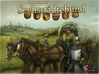| Titel: League of Six / Sechsstädtebund Ontwerp: Vladimír Suchý Tekeningen: Producent: Czech Board Games Aantal spelers: 3 tot 5 Leeftijd: vanaf 12 jaar Speelduur: 60-90 minuten Taal: Engels of Duits |