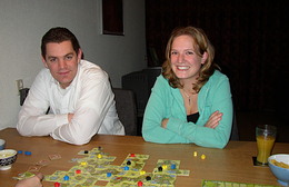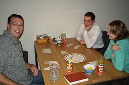 Nadat Carcassonne in een ruime overwinning voor Remco was geëindigd, wilden Sarah en Remco de gasten een nieuw spel leren. Een ideaal spel om te spelen met mensen die niet heel veel spelen is natuurlijk Koehandel. De regels zijn zeer eenvoudig, maar bijna iedereen vermaakt zich met de onderhandel en bluf variant van kwartetten.