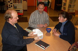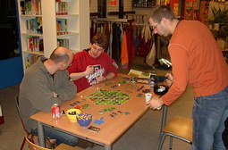 Michiel moest nog een stukkie fietsen eer hij thuis zou zijn, dus hij hield het voor gezien. Een zeer geslaagde spellenavond zat erop. Nog even met Ronald wat spellen doornemen bij de spellentafel, met name Schrille Stille zag er enorm leuk uit. Ronald probeerde er nog een potje Revolte im Rom uit te slepen, maar het was tijd om te gaan. Alleen nog even For Sale bekijken, zag er erg leuk uit, dus ................ toch maar ff spelen.