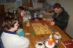 Bij binnenkomst waren Esther, Ingvild en Gerard al bezig met een spelletje