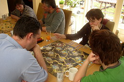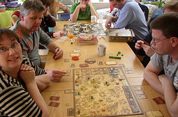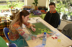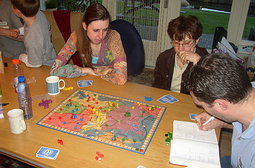 Er werden op 30 April veel spellen gespeeld. Zelf speelde ik er 9, maar heb bepaalde spellen evengoed niet mee kunnen maken zoals Ra, Chinesische Mauer, Tikal, Thurn & Taxis en Medina. De opzet om allemaal veel spellen voor te bereiden en daardoor uitgelegd te kunnen worden door iemand die ook meespeelde werkte dus goed, er zat lekker het tempo in. Voor nu een kort fotoverslag, later in de week de uitgebreide verslagen.