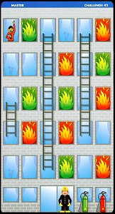 Introductie: Vind de weg in een brandend gebouw. Maak gebruik van de aanwezige ladders en kijk uit voor het vuur! Blus het juiste brandje en red de persoon die vastzit.