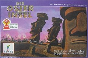 | Titel: Die Oster Insel Ontwerp: Leo Colovini / Alex Randolph Tekeningen: Producent: Blatz Aantal spelers: 3 tot 4 spelers Leeftijd: vanaf 10 jaar Speelduur: 30 minuten Taal: Duits |