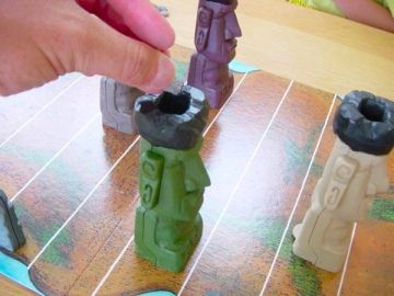 Introductie: Een zeer origineel thema, racen met standbeelden op paaseiland. De ware betekenis van deze beelden is tot op heden niet zeker en zo laat ook de ontwerper ons in het ongewisse maar schetst een mogelijk scenario waarin honderden mensen op het eiland een onderlinge wedstrijd aangingen waarbij deze beelden een zekere rol speelden. Ziezo, de link naar het spel is gelegd.
