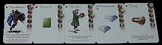 Wordt een merchant-kaart gedraaid, dan volgt de verkoop van de juwelen. Tenzij iemand de Cardinal speelt om de verkoop een ronde uit te stellen. Iedereen bepaalt welke juwelen hij aan wil bieden. Deze worden gedekt op een stapel gelegd. Let op: heb je bepaalde voorwerp- of karakterkaarten die de waarde kunnen beïnvloeden, dan moet je deze meteen bij de juwelen leggen.