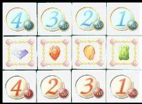 Nu wordt bepaald welke juwelen zeldzaam zijn. De juwelen waarvan er het minste op tafel liggen, zijn het zeldzaamst. Deze krijgt de blauwe nummer 1 (in bovenstaand voorbeeld is dat de emerald). Het minst zeldzame juweel (hier de diamant) krijgt de blauwe 4. Alleen degene die de meeste juwelen van een soort aanbiedt, krijgt het geld: het aantal aangeboden juwelen x de waarde van het modefiche x de waarde van het zeldzaamheidsfiche (in bovenstaand voorbeeld krijgt degene met de meeste diamanten geen punten, omdat deze -tot tweemaal toe- met 0 gewaardeerd wordt). Er zit overigens geen geld bij het spel, de geldwaarde moet bijgehouden worden op een blaadje papier.