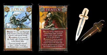 Het einde: Er zijn verschillende manieren waarop het spel kan eindigen. Als er 12 katapults voor de poorten staan, wordt Camelot vernietigd. Als er 7 of meer zwarte zwaarden op de Ronde Tafel liggen, heeft het kwaad overwonnen. Als er geen loyale ridders meer over zijn, is het spel ook verloren. Tot slot eindigt het spel als er ten minste 12 zwaarden op tafel liggen. Als er nog een verrader onder de spelers is, die niet is ontmaskerd, dan worden nog 2 witte zwaarden zwart. Zijn er dan nog meer witte dan zwarte zwaarden, dan winnen de loyale ridders het spel.