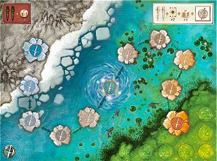 | Spelmateriaal: een groot spelbord, 3 kleine dubbelzijdige spelborden, 16 zwaarden, 168 kaarten, 7 spelerkaarten, 8 dobbelstenen, 30 miniaturen. |