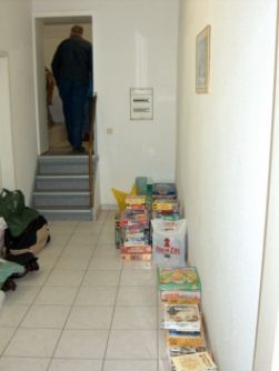 Spiel 2004. Het opstaan verliep soepeltjes. Geen lange rijen voor de douches, verse broodjes van de bakker, iedereen was mooi op tijd klaar. Onderweg naar de beurs was er nog een klein ongelukje gebeurd, waardoor er enige vertraging ontstond. Maar toch waren we mooi op tijd bij de beurs. Daar ook geen lange rijen. Caroline zorgde voor de kaartjes, voor diegenen die nog geen kaartjes hadden. Daarna naar binnen. Als eerste naar de tweedehands markt op zoek naar enkele spellen. De lijstjes werden afgewerkt en bijna alles werd gevonden. Ook nog redelijk betaalbare uitbreidingen voor Star Quest en voor mijn verjaardag werd Full Metal Planet gevonden. Ik vond hem te duur om ter plekke te kopen, maar het aanbod om hem voor mijn verjaardag te krijgen, sloeg ik niet af.